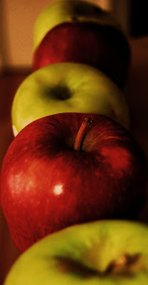 Place fruit in a small baking dish. I used a French Onion Soup bowl to make the apple crisps. You could use those adorable little baking dishes that are colored.