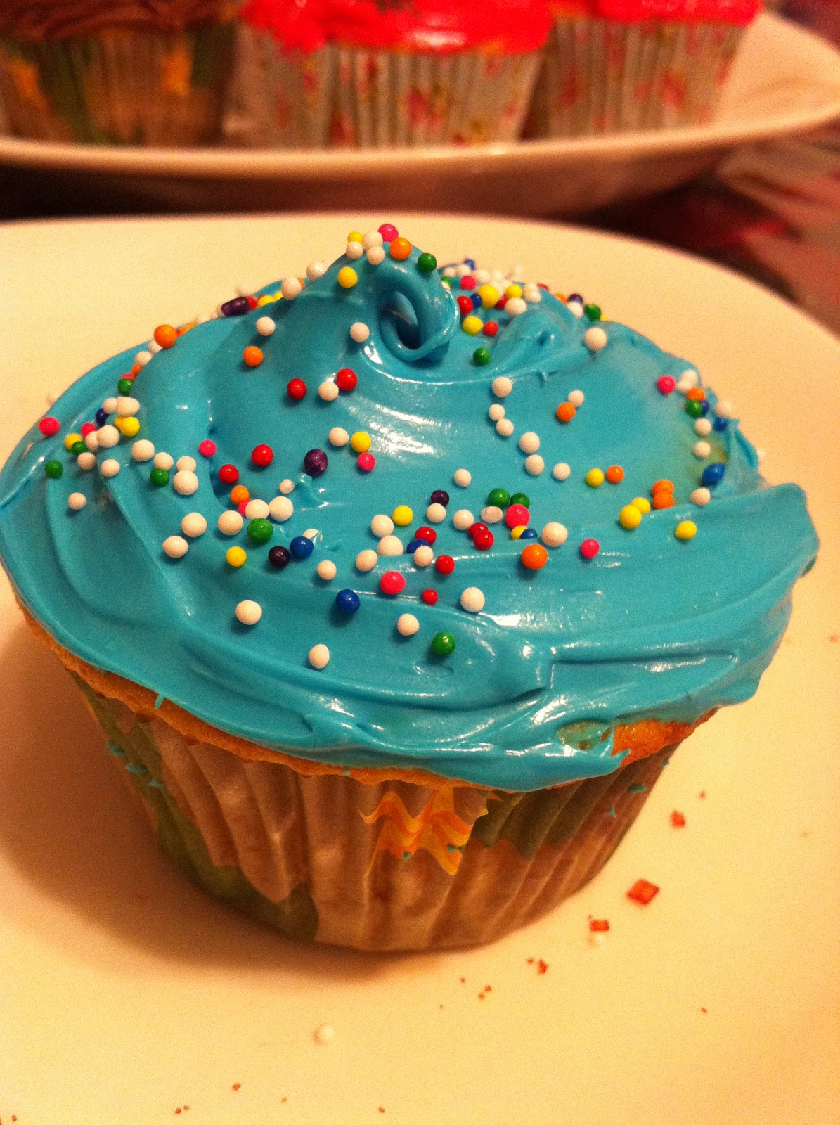 These were just as much fun to make, as they were to eat. It isn’t any wonder why I love cooking and baking so much look at what I grew up around. My mother is a cooking machine, years in the restaurant industry and working in a bakery has left my mother with one mental recipe cookbook. She literally whipped these cupcakes up from memory; no recipe needed for this lady. I can only hope to be as great of a cook as she is someday. Since not all of us have such skills in the kitchen I’ve included a recipe below that is almost identical to the one my mother created from scratch.