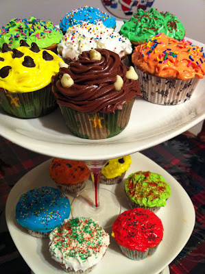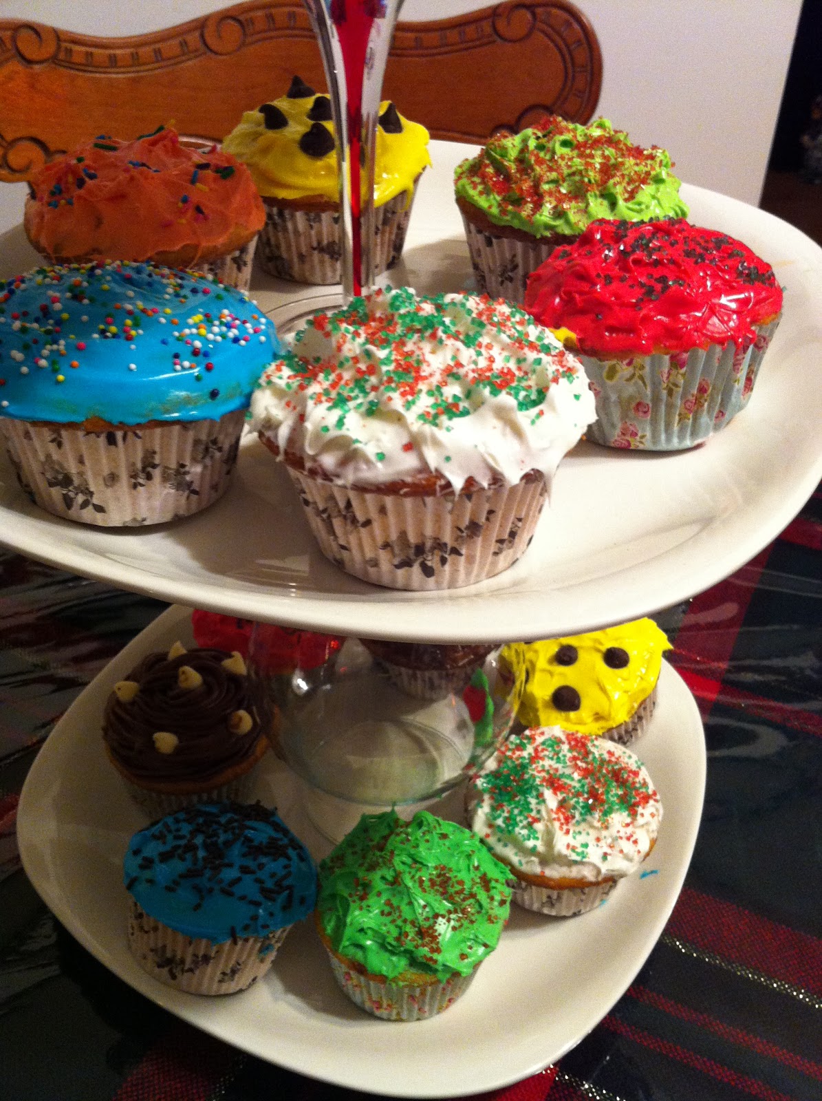 We didn’t have a cupcake stand, so we just used plates and a vase. Be careful when placing the cupcakes on the top, as it can be a slanty shanty operation.