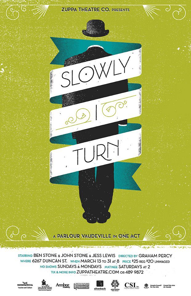 Zuppa Theatre Co. Presents: “Slowly I Turn” a Parlour Vaudeville in ONE ACT. Great local talent at an unbeatable price. For more details go to: http://www.facebook.com/events/360544593966016/