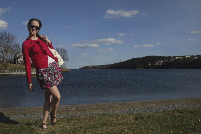 First I tried a simple white tank, and I scrapped it because it felt too undone. I tried another cardigan, but it was off white, and didn’t match. I tried a simple long sleeved white shirt, but it reminded me too much of dance class and the skirt felt more like a tutu. Finally it dawned on my to wear my pink cardigan! The over-sized bow detailing at the top was just enough to balance the busyness of the skirt, but not too plain that it felt like it didn’t go with the ensemble. I’m happy to say that I’ve finally found something to wear with this super fun skirt. What are you thoughts blog reader?